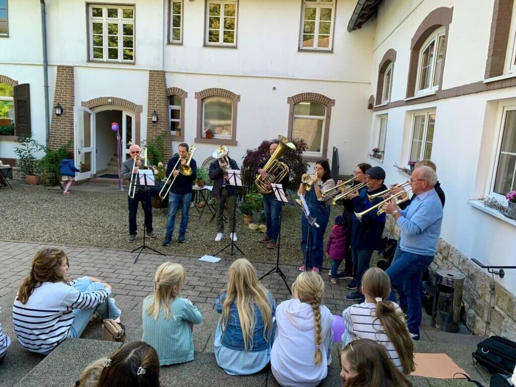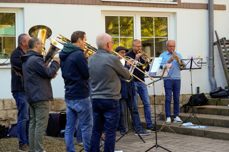 Nach dem Gottesdienst wurden alle draußen mit zwei Liedern des Posaunenchors der Ev. Gemeinschaft empfangen bevor es ein gemeinsames Mittagessen gab. Bei badischem Schäufele und Kartoffelsalat wurden gute Kontakte geknüpft und wertvolle Gespräche geführt.
