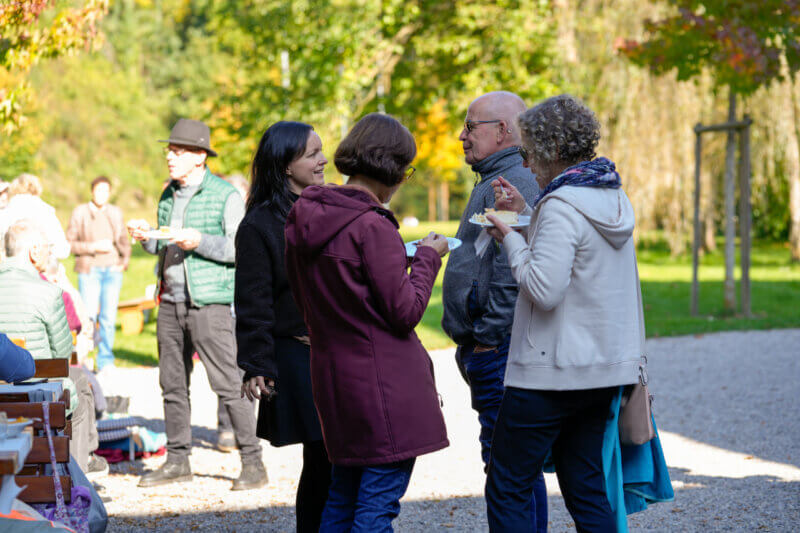 Bei schönstem Herbstwetter begann der Tag mit einem Empfang bei Kaffee und Hefezopf.