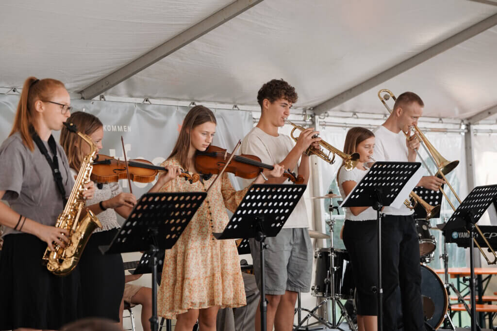 Bei einer kleinen Bühnenshow, moderiert von Vorstand Friedrich Schöll, zeigten unterschiedliche Ensembles ihr Können. Gekonnt eröffnete die Band das Programm. Anschließend erfreute die Kiddyband das Publikum mit einem Arrangement des Liedes „Denk an heut“. Schwungvoll ging es weiter mit dem Song des Jugendchors „There is sunshine“ und beim Auftritt des Kinderchors klatschten die Zuhörer begeistert mit. Eine Tanzeinlage der Jungscharmädchen beendete die Vorführung und wurde mit anhaltendem Beifall belohnt.