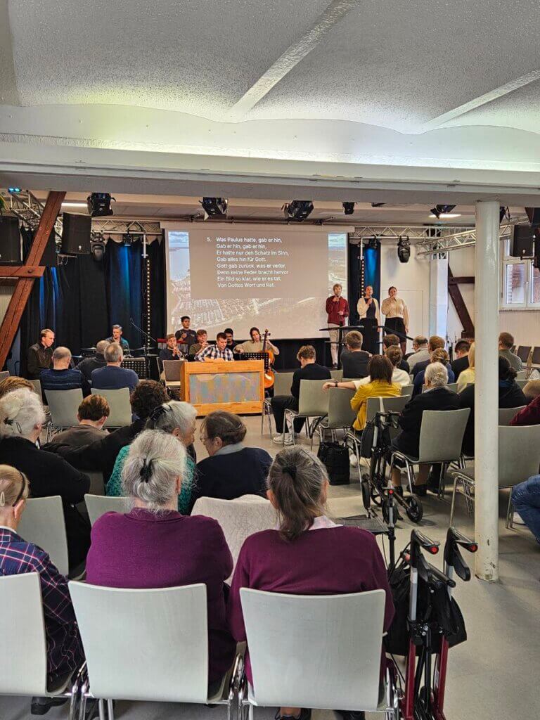 Nach dem Gottesdienst wurde die Gemeinschaft bei Kaffee und Kuchen weiter gepflegt. Für die Aktiven und Junggebliebenen sorgten gemeinsame Spiele in der Sporthalle für Spaß und Bewegung, und die speziell für die Kinder eingerichtete „Game-Area“ war ein spannender Treffpunkt.