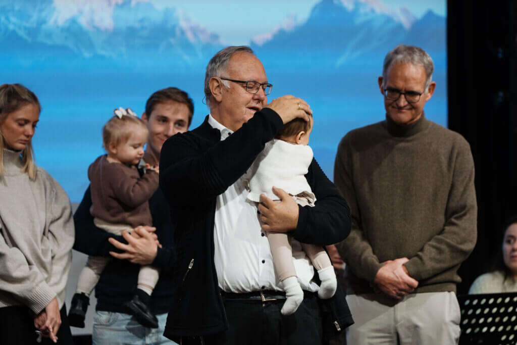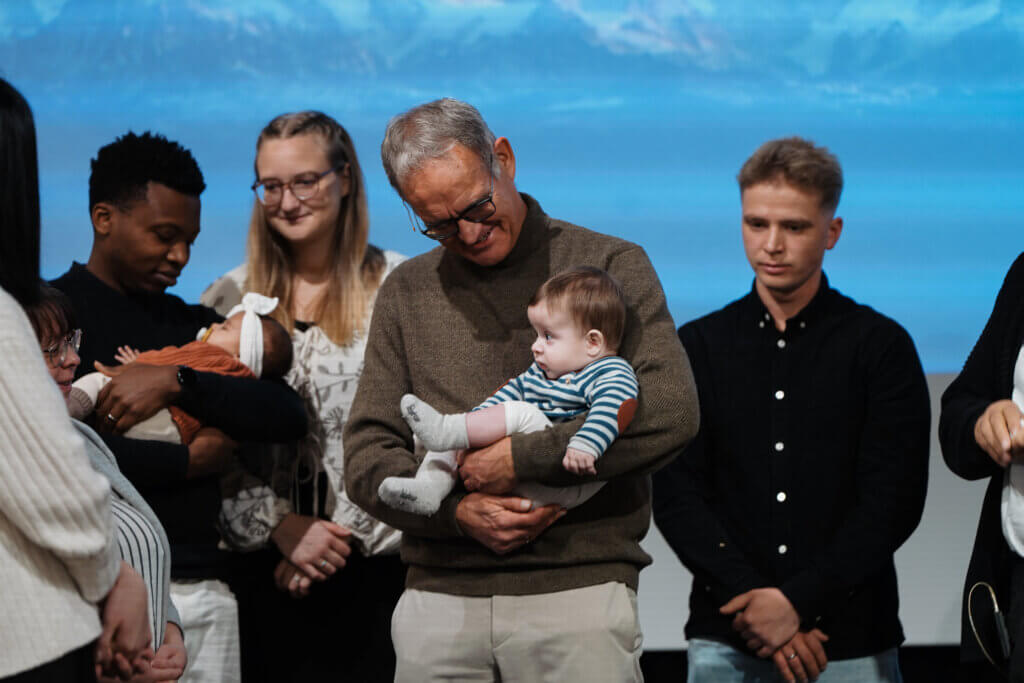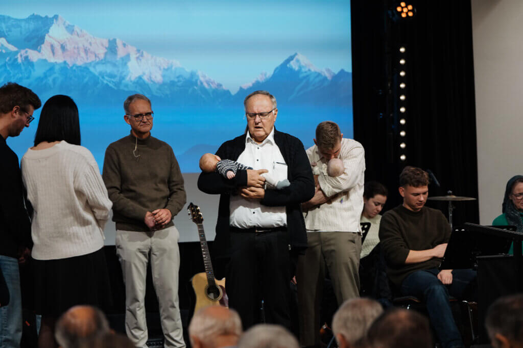 Acht junge Familien, die ihre Kinder gerne segnen lassen wollten, kamen nach vorne. Wie in den Versen in Markus 10,13-15 geschrieben steht, wurde den Kindern die Hände aufgelegt und für sie gebetet. Dadurch wurde die ganze Gemeinde daran erinnert, diese Kinder als einen wertvollen Schatz in ihren Gebeten mitzutragen.