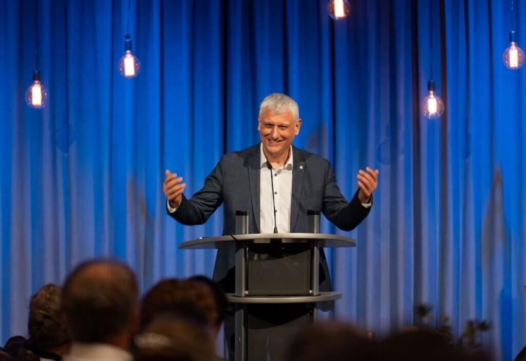 Emotionale Höhepunkte der Feier waren verschiedene Filmbeiträge, die Toms Lebensweg nachzeichneten. Sie zeigten, wie er schon früh den Wunsch verspürte, sein Leben bewusst in den Dienst Gottes zu stellen. Kåre Johan Smith betonte in seiner Ansprache, wie gesegnet es ist, Menschen zu begegnen, die in enger Verbindung zu Jesus Christus stehen – Menschen, die mit dem Platz, den Gott ihnen zugewiesen hat, zufrieden sind. „Das trifft auf Tom Bäuerle zu“, so KJ Smith.
