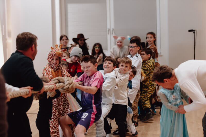 Fröhliche Kinderstimmen schallen aus dem Foyer im Versammlungshaus von DCG Hessenhöfe.